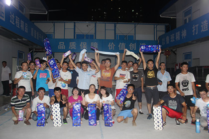 乒乓球比赛进行中  颁奖环节 续奥运之火,展青春活力,共建联控促和谐。8月25日,深圳地铁9112-1项目部在荔香站项目分区举行的羽毛球和乒乓球比赛正式打响。比赛采取单轮淘汰制,项目新老员工和工程监理等各方人员的共同参与。 换上了轻便运动装的同事们,变成了活力四射的运动员,不论男女,都忘却了工作带来的繁忙,用激情来诠释了“青春”与“活力”,尽显运动风采。羽毛球赛场上,高远球、扣杀、劈杀、吊球等各路球技展现的淋漓尽致;乒乓球赛场上,直拍、横拍、扣球、旋转球、弧线球等不甘示弱,一一得到体现。赛场下,激烈的比赛也带动着人们的神经,大家变成了尽职的啦啦队,喝彩声、加油声、欢呼声此起彼伏。比赛中,每位参赛选手充分发挥顽强拼搏的体育精神,即使落后,仍每球必争,决不轻易放弃,比赛胜负变得已不重要,不言放弃、奋力拼搏的精神充溢了整个赛场。其中朱修臻、韩田有、王栋等几位羽毛球高手的精彩表现,更为比赛增色不少,使比赛成为一次难得的现场观摩和学习的好机会。整个赛场充满了拼搏和快乐的气息。 近两个小时的激烈比赛,项目部的“全能”型选手朱修臻,“力斩”群雄,最终获得了乒乓球和羽毛球双料冠军,人送外号“双冠王”。随着冠军的诞生,比赛也接近了尾声。有比赛,当然不能少了奖品,综合办为每位参赛人员都准备了不同的奖品,从洗衣液到沐浴露,从毛巾到纸巾等大大小小的生活用品中,体现出了项目部对员工贴心的关怀,比赛在大家的欢笑声中落下帷幕。 比赛的举行,不仅丰富了大家的业余文化生活,锻炼了身体,而且加深了员工之间的了解,促进了感情的交流,同时也给大家工作时紧绷的神经带来了些许的放松。不论年龄,不论性别,不论高矮胖瘦,大家一起舞动青春的球拍,共建联控促和谐!(文/深圳地铁9112-1项目:吴玉鸿飞)