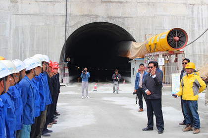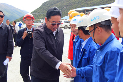 一行人在会议室观看宣传片  在现场对雀儿山取得的成果表示祝贺  罗布江村与项目同事亲切握手 “二呀么二郎山,高呀么高万丈……” 8月27日,四川省政协副主席罗布江村,四川省交通厅副厅长杨占长,甘孜州政协、甘孜州协调办、局总工程师谭立新、隧道公司总工程师郑邦友一行赴隧道公司雀儿山项目调研慰问。 在施工现场,罗布江村与项目同事们亲切握手交谈时,感慨的说道:“曾经一首《二郎山》的歌曲传遍了大江南北,歌里面唱道‘二呀么二郎山,高呀么高万丈’,可是比起雀儿山的高寒严峻,又是小巫见大巫了。如今还有不到400米,隧道即将贯通,你们都是为川西地区发展,促进藏区经济繁荣做出了巨大贡献的人,甘孜州人民会记住你们,四川省的千千万万人民也会记住你们!” 随后,项目经理江章保就项目概况、施工进度等方面进行了简要介绍,罗布江村指出,目前,项目部要把绿色施工,文明施工放在首要位置,雀儿山属于高原生态,植物生态尤其薄弱,一旦被破坏,恢复周期将会很长。早在前几年,甘孜州政府就提出了以生态旅游促进地方经济发展的重要方针,而雀儿山所隶属的德格县地区,又是川西高原藏文化的传播和发祥地。雀儿山作为整个317线生态旅游中最重要的一环战略布局,其重要程度不言而喻,同时,雀儿山隧道具有重要的政治意义,战略意义和经济意义。 罗布江村强调,项目部要做好退场还草的准备工作,把雀儿山隧道打造成绿色隧道,环保隧道,把青山绿水留给藏区同胞,也把雀儿山的美留给子孙后代。江章保表示,将在后期把生态恢复作为项目工作重点,还藏族同胞们一个绿色的雀儿山! 最后,罗布江村一行人在项目会议室观看了宣传片——《雀儿山上有个家》,对项目前期付出的不懈努力,攻坚克难表达了崇高的敬意。(文/隧道公司雀儿山项目:徐志俊)