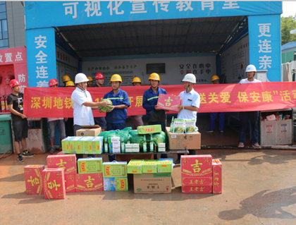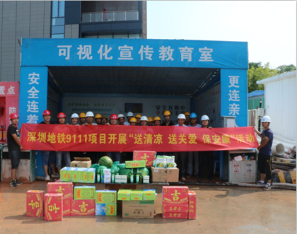 项目开展为工友送清凉、送关爱、保安康活动  项目监理、项目副经理陈书太发放防暑降温物资 连日来,深圳酷热难熬,地表温度达到了40摄氏度左右,烈日炎炎,但一线工人依然冒着高温酷暑在工地上挣时间、赶进度,为了保障他们的身体健康和安全,助力施工生产。8月26日,隧道公司深圳地铁9111项目工会再次开展对一线工人“送清凉、送关爱、保安康”的活动。 工会为施工一线员工准备了西瓜、人丹、藿香正气水、王老吉等解暑物品,并特地送到施工现场发放。此外,项目工会主席兼安全总监许陟讲解了中暑救护常识、防暑降温的有关保健知识。 “虽然天气炎热,但是有了项目的关心,我们心里感到阵阵清凉,我们一定会竭尽全力做好促进生产工作!”一位来自湖南的劳务班组负责人兴奋的说道。 项目经理黄两宜表示:送清凉不能流于形式,也不是只送一次,而是要长期持续开展,要保证送清凉工作落实到位,切实地为一线劳动者们送去清凉,为他们的健康保驾护航。(文/隧道公司深圳地铁9111项目:喻洋)
