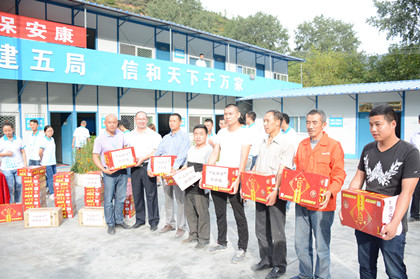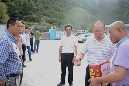 谭立新和大家合影  谭立新慰问老同志刘志华  谭立新嘱咐大家注意高温作业安全 近日马尔康高原地区持续高温,给隧道公司汶马项目工程施工、员工生活带来了较大的影响。为保障职工的身体健康,确保全体员工全身心投入到安全生产工作中,8月26日,局副总经理谭立新在公司总工程师郑邦友、公司总经理助理柳志伟的陪同下到达汶马项目开展了“送清凉”活动。 谭立新向全体参建人员递上了加多宝、藿香正气液、板蓝根等清凉解暑物资。认真了解了大家在高温下工作的情况,对烈日下坚持施工作业的所有劳务人员表示关心和问候,强调在作业过程中一定要按规范设计要求保证安全施工,还再三的嘱咐工友们要注意饮食清淡卫生,保证睡眠时间,保持身体健康。 局工会每年都会以各种形式为员工排忧解难,开展“送清凉、送温暖”慰问活动,为生产在一线的员工送去关怀。激发了项目员工爱岗敬业的热情,大家纷纷表示,在以后的工作中会努力把各项工作做得更实、做得更细、做得更好,全力促进公司的安全生产。(文/隧道公司汶马项目:傅文璐)