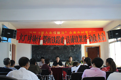 铺轨架梁动员大会现场 8月29日,邵东县火厂坪镇怀邵衡铁路建设架梁节点动员大会在火厂坪镇人民政府会议厅召开,会议由镇指挥部部长陈建齐主持,镇长兼镇指挥部指挥长李锭、邵东县指挥部张宏涛、各村级干部及隧道公司怀邵衡铁路项目经理部代表参加了会议。 会上,李锭首先阐述了铁路建设是民生工程,怀邵衡铁路途经火厂坪是为火厂坪人民谋福利的工程,必须无条件确保架梁通道的畅通。然后宣读了铁路沿线各村管辖范围内的架梁时间节点,要求各村级干部切实做好本职工作,统一思想,全面细化,全面排查,于9月1号前逐一处理存在的各种矛盾纠纷。并指出村民合理要求要尽快解决,短时间内无法解决的要做好解释工作,拿出解决方案,对于村民无理要求,且沟通无效的,镇政府将依法加大打击力度,以实现零阻工,确保架梁工作如期顺利进行。 李锭表达了指挥部对怀邵衡铁路项目经理部的几点建议:一是统一思想,万众一心,全力冲刺架梁节点目标;二是在确保安全质量的前提下,加快施工进度;三是抢抓施工黄金时节,防暑降温措施要到位。 最后,项目二工区副总工程师罗安全代表项目经理部发言,感谢邵东县指挥部、火厂坪镇指挥部以及各村级干部对项目的大力支持,并代表项目经理部表态:认真落实安全生产,生态环境,做到安全施工、文明施工,全面冲刺架梁节点目标,为怀邵衡铁路建设做出贡献。(文/隧道公司怀邵衡铁路项目二工区:潘泽忠)