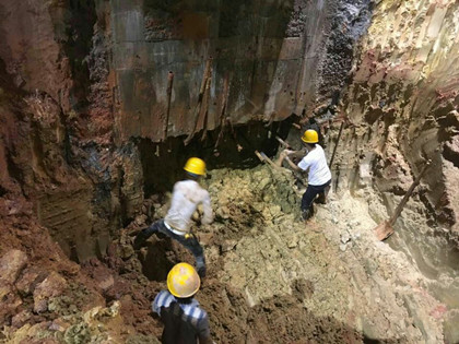 地下连续墙逆做正在人工掏泥  地下连续墙逆做焊接钢筋 近日,从隧道公司深圳地铁三期工程9号线西延线9111标段临海路站传来喜讯,该站最后一段地下连续墙逆作完成砼浇筑,比施工计划提前了两天。标志着该站怡海大道11万伏高压电缆箱涵原位支托保护及连续墙逆作全部完成,车站进入主体结构施工高峰期。同时,深圳地铁9号线西延长线、地铁9111项目最大危险源解除,大快人心。 据悉,五局隧道公司承建的深圳地铁9111项目临海路车站是9号线西延线自西向东第3个车站,为地下两层岛式车站,车站全长157.5m,标准宽度20.2m。其西侧怡海大道11万伏高压电缆箱涵横跨车站主体及附属结构1号风亭组,长44.4m,钢筋混凝土箱涵尺寸3.5m(宽)*2.3m(高),每延米重7.75t,是半个南山及蛇口片区主供电缆。受电缆箱涵无法迁改影响,采用原位支托保护方案。同时,该处基坑围护结构地下连续墙采用逆作法施工,地下连续墙逆作深度18.65m,宽度4.15m,厚度0.8m。 该站位于前海抛石挤淤填海特殊地层中,地下水丰富,块石最大粒径最大达3.6m,淤泥层最大厚度8.5m,且回填有生活垃圾及建筑垃圾。施工地质极差,施工难度极大,施工风险极高,有号称“果冻夹石头”中进行地下连续墙逆作施工之称。面对此重大的风险源,项目部从组织、现场实施上均高度重视,严格执行领导带班制度,在落实设计方案及专项方案的基础上,人工开挖面顶部,增加双排直径42mm无缝钢管超前支护+初喷砼快速封闭+必要时的全断面直径42mm无缝钢管梅花型超前支护等措施。同时严格工序管理,24小时不间断作业等。历时10余月,风雨无阻,终于成功的完成了“果冻夹石头”中的地下连续墙逆作关键工序,取得了可喜的成绩。 值得一提的是,这也是深圳地铁建设史上首次在抛石挤淤填海地区尝试基坑围护结构地下连续墙逆作施工。该工序的成功实施,不仅成功的规避了项目施工的最大风险源,而且为后续类似工程积累了宝贵的施工经验,具有十分广泛的借鉴意义。(文/隧道公司深圳地铁9111项目罗伟庭、喻洋)