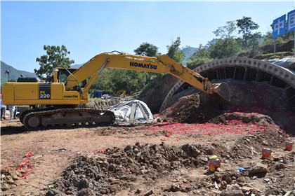 割髭岭隧道开工合影  李彦伟总经理正在听取项目经理肖玉奇的汇报  挖掘机正在施工作业 9月7日上午,备受关注的隧道公司平赞高速公路项目割髭岭隧道工程宣布正式开工,石家庄交建高速公路建设管理有限公司总经理李彦伟、副总经理甄京山、平赞筹建处处长李岩军,副处长王彦忠、宋志国,中建股份平赞高速项目经理部指挥长余繁显,副指挥长盛景及平赞高速项目七分部项目经理肖玉奇出席仪式,项目全体管理人员及劳务班组参加。 李彦伟代表石家庄交建高速公路建设管理有限公司对隧道工程正式开工表示祝贺。他说,割髭岭隧道工程是河北省交通发展的关键,希望广大建设者不负重托,再接再厉,精心规划,精心组织,以一流的效率、一流的质量,建设一流的隧道。 中建五局作为割髭岭隧道工程项目法人单位,今年以来围绕建设一流隧道的目标,做了大量扎实有效的前期准备工作。先后邀请多名国内一流隧道专家,就隧道勘察、设计、施工以及风险管理等问题,多次进行研讨和论证,广泛吸取专家的意见和建议。选择国内优秀的勘察队伍,利用三个多月时间,对割髭岭隧道地质情况进行了详细勘察,准确探明了隧道走线的地质情况。通过公开招标选择了优秀的设计单位,对隧道进行精心设计。委托国内权威院校和科研院所,围绕水土保持、地质灾害、超前地质预报等内容,开展了一系列专题研究,为工程提供了科技的技术参数和依据。科学、认真、严谨的准备工作,得到了专家们的广泛好评,将施工风险降到了最低,为隧道工程的安全、顺利施工奠定了坚实的基础。 割髭岭隧道工程是平赞高速公路全线唯一的控制性工程,此次开工将平赞高速公路项目施工进度推向一个新的阶段。(文/隧道公司平赞高速项目:王朝俊)