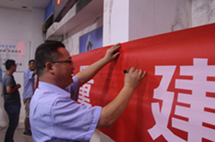 参会人员签字承诺 9月5日下午,隧道公司汉十铁路项目二标一分部在项目部会议室召开“质量月”启动仪式,项目部全体管理人员及各作业队伍共80余人参会。 会议由质量总监李秉海主持,他针对汉十铁路HSSG-2标项目经理部一分部2016年“质量月”活动策划方案作出详细介绍,主要宣贯了活动目的、活动主题、组织机构人员安排以及“质量月”的活动内容:包括动员宣传阶段、自查自纠阶段、活动实施阶段和活动总结阶段。随后,项目经理孔卫杰、项目总工杨培诚、安全总监郭雷合等作补充发言。 孔卫杰强调了三个方面:一是“质量月”活动要以红头文件的形式下发;二是各劳务队之间要做出评比;三是要指定奖惩措施。郭雷合强调要从两点做好工作:一是从原材料把关;二是做好试验检测。最后,孔卫杰带领参会集体所有人员宣读“质量月”活动口号“提升供给质量,建设质量强国”。随后拉开巨大红色横幅,所有参会人员在横幅上签字,以此表示严把质量的决心。并把该横幅挂在会议上直至质量月活动结束为止。 此次会议加强了项目质量文化建设,营造了全员关心质量、重视质量的良好环境氛围,凝聚了万众一心搞好质量的坚定信心,提高了参会人员的质量意识和服务水平,从而把“质量重于生命,责任重于泰山”的精神融入到每一个员工心中。(文/隧道公司汉十铁路项目:李林谱)