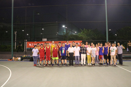 比赛进行中  合影 展青春风采,树中建形象。中建南方投资公司2016届新员工携手五局隧道公司深圳地铁9111项目开展了以“相约前海,激扬青春”为主题篮球友谊赛,中建南方投资公司党委书记张明铁、项目经理黄两宜、项目总工罗伟庭、生产经理陈冲及团支部参加。 比赛前队员们个个激情满怀,积极准备。比赛时,队员们迅速投入比赛,个个雄姿英发,在场上你争我夺,动作潇洒,双方争夺异常激烈,比赛进行地如火如荼,队员情绪高涨,在激情如火、活力四射、昂扬向上的氛围里,队员们激烈的进攻、完美的配合……赢得了场下观众的阵阵喝彩。最后,中建南方投资公司以52比51分赢得了本次比赛的胜利,终场的哨声响后,双方队员们握手挥别,体现了“友谊第一,比赛第二”的赛场精神。 此次篮球友谊赛活动的顺利开展,不仅锻炼了广大员工的身体,锤炼了大家的意志,而且激发了大家团结协作、超越自我的团队精神。促进了中建南方投资公司与项目的友谊,展现了我们中建员工积极向上、奋勇拼搏的精神面貌。(文/隧道公司深圳地铁9111项目:喻洋)