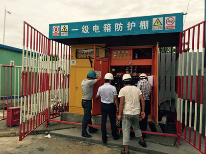 验收组一行查看现场临电布置情况  检查现场 近日,盾构分公司深圳地铁9111标项目振临区间隧道施工现场迎来由中建南方投资公司与监理公司组成的验收组开展临电验收工作。 振海路站为自西向东第二座车站,车站位于前海深港现代服务业合作区梦海大道(原振海路)与规划支路交叉口下方,为地下两层明挖框架结构、双柱三跨岛式车站。车站有效站台中心里程为YCK1+160.000,车站设计起点里程为YDK1+065.500,设计终点里程为YDK1+291.000。车站总长度约225.5m,站台宽13m,车站标准段宽度为22.2m,车站总建筑面积12800m2,底板埋深约16~18m,顶板覆土约3m。振海路站作为盾构始发场地布置,完成振临区间的盾构施工。 区间盾构始发端头位于振海路站东端,场地较小,用电机具相对集中。现场主要施工机械有冷却塔、轴流风机、搅拌站、龙门吊、电瓶车、盾构机等,其中盾构机采用10KV专用电缆线,其他现场设备用电由两台500kVA变压器从市电电网引进。 进入深圳地铁9111标项目施工现场,验收组一行在机电总工李正书的陪同下开展施工现场临时用电验收工作,他们首先对现场外电防护与配电线路、接地与防雷、配电室及配电柜等电气设备进行了全面检查;然后对临时用电的内业资料也进行了细致检阅。通过一下午的验收工作,验收组对深圳地铁9111标项目的临电工作做出了充分肯定。(文/隧道公司盾构分公司深圳地铁9111标项目:佀哲)