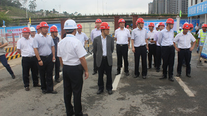 官庆董事长参观现场 9月10日,中国建筑工程总公司董事长、党组书记官庆,基础设施事业部执行总经理赵广建赴中建五局隧道公司盾构分公司承建的南宁地铁四号线玉象路车站项目进行调研指导工作。局副总经理、总工程师谭立新、南宁地铁2号线总经理胡卿纪、南宁地铁4号线项目负责人周雄威全程陪同。 在现场,官庆听取了周雄威对玉象路车站安全生产工作的汇报,对盾构分公司南宁地铁玉象路车站现阶段的安全生产工作给予了肯定,并指出安全施工永远要放在第一位,要加强对全体施工人员的安全教育力度,强化安全意识,全体施工人员应树立“安全第一,预防为主”的安全理念,将安全施工的意识深入人心,让每一位施工人员都能“高高兴兴上班,平平安安回家”。 官庆赞扬了现场管理人员是一支难得的高素质队伍,不仅技术娴熟,经验丰富,还拥有饱满的工作热情和高度负责的态度。对于现场施工进度,官庆表示项目施工进度控制合理,他指出施工进度是考量施工企业施工能力的一项重要指标,能够展示施工企业形象和提高企业经济效益,中建五局在施工过程中要严格把握进度,按期交工。 最后,官庆强调中建五局作为在房屋建筑施工、基础设施建设、房地产与投资开发业务方面都有优势地位的企业集团,要保持住自己在关键领域中的优势地位,特别是在基础设施领域,作为中国建筑唯一具备隧道施工一级资质的企业,要大力拓展高铁、城市轨道市场,彰显自己的比较优势。以高标准、严要求建设好南宁地铁四号线,有利于中建五局进一步扩大在地铁市场中的优势地位。(文/隧道公司盾构分公司南宁地铁项目:张世荣)