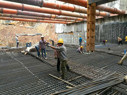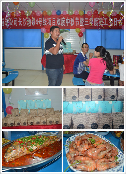钢筋绑扎施工  活动剪影 秋风送爽,正是黄金施工大干好时节。 长沙地铁4号线溁湾镇站项目部中秋佳节全力以赴赶工期,冲刺9·30盾构始发节点目标。溁湾镇站项目执行经理周阳、生产经理付俊武及施工员仍然坚守岗位指挥现场施工施工,现场龙门吊、履带吊、塔吊、挖掘机等大型施工机械设备24小时不停歇作业,土方施工、钢支撑、钢筋绑扎、支撑拆除等工作有条不紊的进行着。 忙碌了一天,为了让项目员工感受“家”的温暖和传统节日的气氛,项目办公室和食堂工作人员精心为项目员工准备了中秋晚餐,还为三季度生日员工庆祝了生日。一个个五颜六色的气球、彩带,一桌桌丰盛的晚餐、一盘盘新鲜的水果和美味的甜点、一张张快乐充满幸福的笑脸以及一首首动听美妙的音乐勾勒出了长沙地铁4号线项目中秋佳节温馨、美好画面。 简短温馨的晚餐后,项目上的员工又回到各自的工作岗位上,为9月30日盾构始发节点目标做各项准备工作。(文/隧道公司长沙地铁4号线项目:谭梓妮)