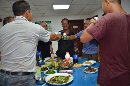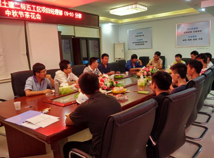 举杯庆中秋  中秋节茶话会 9月14日下午,隧道公司长沙地铁5号线项目部的食堂特地准备了团圆宴,邀请了农民工一起过节。“我们以水代酒,为一起过一个特殊的中秋节团圆节干杯!”在商务经理余迪提议下,项目部全体人员和农民工代表纷纷举起了手中杯子庆祝中秋佳节。 隧道公司长沙地铁5号线项目部施工任务包含一站八区间,其中蟠龙路站位于万家丽北路与蟠龙路交叉路口,长约477.3m,是长沙地铁5号线工程最长最大的一个车站,车站地质变化较大、地面交通繁忙、地下管线复杂、周边建筑物多、拆迁难度大、高压线上跨车站、施工作业净空很大程度被压缩,施工难度和风险都非常大。 为加快工程建设,保证朝阳站盾构下井10.10节点、蟠龙路站南端盾构下井11.1节点的顺利完成,项目部全体建设者放弃了节日与家人团聚,坚守在施工一线日夜奋战。项目部还特别邀请了农民工代表到项目部一起共度中秋。 此外,项目部朝阳盾构工区还举办中秋节茶话会。班子成员与独在异乡的建设者们欢聚一堂,庆佳节、叙友情、话发展,展开了一场别开生面的迎中秋茶话会。 “离家千里,但受到的关爱一点也没少。”新员工小尹眼中噙着泪水,压抑不住激动的心情,他说:“今年是走出校门以来的第一个中秋节,虽然没能和父母团聚,但项目部让我感受到了家的温暖,大家热心的关怀犹如亲人一般。”(文/隧道公司盾构分公司长沙地铁5号线项目部:刘蔚)