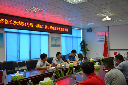 会议现场  丁进良一行现场指导工作 9月20日,局基础设施部安全总监丁进良一行赴隧道公司长沙地铁4号线二项目,就安全生产百日行活动专项行动进行了检查,隧道公司安全总监陈胜凯、盾构分公司安全总监陈家祥陪同检查。 局检查组严格安全生产百日行专项行动要求,对项目组织机构、管理体系、方案编制审批情况、重点危险源管理、应急预案、施工现场大型机械、盾构施工等进行了全面排查,检查组一行深入盾构区间,详细检查了盾构掘进参数、出渣量、设备维保情况等。 丁进良对长沙地铁4号线二项目安全标准化施工控制成果进行了肯定,并要求项目管理人员每时每刻将安全放在第一位,把握好安全防线,铸造精品地铁。(文/隧道公司长沙地铁4号线项目:莫良君)