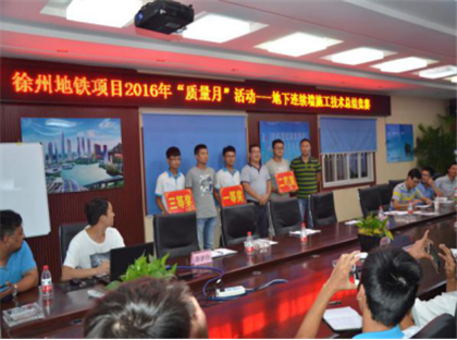 比赛现场  颁奖合照 近日,隧道公司徐州地铁项目举行了地下连续墙施工技术总结竞赛,通过此次活动,让全体管理人员更加深入了解地连墙施工工艺流程以及现场施工控制要点和质量标准。 此次比赛各工区选派1到2名技术人员参赛,施工总结采取PPT、视频等表现形式进行解说。本次比赛本着公开、公平、公正的原则进行,由隧道公司副总经理兼徐州地铁项目经理袁晏仁、项目总工张艳涛及各工区总工组成的评审小组进行评比打分。每个工区通过对地下连续墙施工技术的总结巩固自己的实际工作经验,通过与其它队伍的比试提升自己的不足,全面化、深刻化提升自己对地下连续墙施工技术的掌握程度,取其之长,补己之短,避免短板效应带来的不良影响,帮助青年员工快速成才。 本次比赛在激烈的讨论中落下帷幕,最终由西安路站获得第一名,文化宫站获得第二名,徐州火车站站获得第三名。通此次活动,让员工巩固对地连墙施工工艺流程的掌握,学到更多的现场施工知识,为加强现场质量管控打下基础。(文/隧道公司徐州地铁项目:张兵)