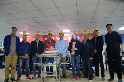 寿星们合影 在绵绵细雨中迎来了祖国的67岁生日,国庆佳节即将来临之际,9月30日晚,隧道公司长沙地铁5号线二标第五项目部在项目部食堂举行了第三季度员工生日会,寿星们与祖国一起过生日。 “祝你生日快乐,祝你生日快乐,祝你身体健康,祝你阖家幸福”,伴随着大家的歌声一个心形蛋糕映入眼帘。项目部工会主席李勇泉说道:“我们是一个温暖的大家庭,首先给与大家最真诚的节日祝贺,其次也祝第三季度所有的寿星们生日快乐。”这个心形蛋糕也象征着整个项目部是一个团结的大家庭。 隧道公司长沙地铁5号线项目部施工任务包含一站八个区间,其中蟠龙路站位于万家丽北路与蟠龙路交叉路口,长约477.3m,是长沙地铁5号线最长最大的一个车站。车站地质变化较大、地面交通繁忙、地下管线复杂、周边建筑物多、拆迁难度大、高压线上跨车站、施工作业净空很大程度被压缩,施工难度和风险都非常大。为确保工程进度,保证朝阳站盾构下井10.10节点、蟠龙路站南端盾构下井11.1节点、朝阳站盾构始发11.9节点的顺利完成,项目部全体人员放弃了国庆节假日,在寒冷与风雨交加的天气中,仍坚守在施工一线日夜奋战。齐心协力、团结一心、在大家的共同努力下向着美好的明天而奋斗。 (文/隧道公司盾构分公司长沙地铁5号线:栾格格)