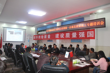 参会人员聚精会神的观看培训视频 9月29日晚,隧道公司汉十铁路项目HSSG-2标项目经理部召开了由工程技术部组织的连续梁施工专题培训会。会议由项目总工杨培诚主持,现场所有技术人员、各劳务队队长及班组长共计40余人参会。 会上,项目副总工李智勇对挂篮施工工艺作了详细的讲解,通过PPT及视频动画让参会人员更直观了解到挂篮安装及挂篮行走施工的要领,紧接着详细介绍了边跨浇筑施工、合龙段施工和施工控制的特征及其流程。 杨培诚强调,连续梁悬臂浇筑施工过程中除了如何把握支架焊接、模板拼装、钢筋原材料下料、预应力定位、预埋件定位的关键点的控制,还应注意到机械设备的配件及混凝土储备、拆除工程中安全控制等7个方面的问题,确保连续梁施工顺利完成。 最后,由监理组长、质量总监、安全总监对连续梁施工过程中质量安全的把控做出指导性的建议发言,强调了有关连续梁施工的关键点控制等等。 培训会结束后,工程技术部组织了连续梁施工岗前培训考试。此次关于连续梁的施工技术培训及考试旨在让大家掌握连续梁悬臂浇筑施工的要领,增强现场技术员与工人的施工技能,从而使大家更好的把这些技能用到安全质量施工过程中去。(文/隧道公司汉十铁路:李林谱)