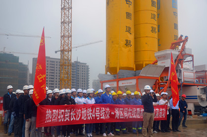 盾构工区执行经理带领参建团队进行宣誓  彭鸿志祝贺溁湾镇站顺利完成9·30盾构始发节点目标并致辞 10月1日举国庆祝新中国成立67周年,上午11时16分,隧道公司长沙地铁4号线溁湾镇站举行了溁湾镇站首台盾构始发仪式,长沙地铁4号线一标指挥部常务副指挥长彭鸿志、党委书记欧阳志、执行指挥长兼总工程师陈俊、副指挥长兼安全总监罗明、隧道公司副总经理刘德、隧道公司盾构分公司总经理夏一夫及项目全体管理人员和劳务班组参加了始发仪式,溁湾镇站首台盾构始发标志着长沙地铁4号线溁湾镇盾构项目正式进入盾构掘进施工阶段,值此国庆节,为祖国献礼。 盾构工区执行经理詹杰带领全体管理人员进行了活动宣誓。随着彭鸿志宣布“长沙地铁4号线溁湾镇站至湖师大站左线盾构正式始发”,DZ257盾构机刀盘开始缓缓转动,。彭鸿志对第六项目部顺利完成溁湾镇站至湖师大站左线盾构始发表示祝贺,并指出:溁湾镇站顺利完成南端头盾构始发节点目标非常不容易,全体管理人员不畏艰难、奋勇拼搏,克服了技术难度大、地质条件复杂、施工环境恶劣等困难,借此机会,代表指挥部向溁湾镇车站及盾构工区团队表示衷心的感谢。彭鸿志强调,溁湾镇站盾构施工下穿正在运行的地铁2号线,施工难度大、安全风险高,要保证安全质量,狠抓施工进度,确保10月30日实现溁湾镇北端头盾构始发节点目标。此外,全体管理人员在紧张工作中还要注意劳逸结合,天气变化大,注意保暖。 刘德要求长沙地铁4号线项目溁湾镇站全体管理人员以溁湾镇站首台盾构始发为契机,坚持科学组织、精细管理、统筹安排、开拓进取,将溁湾镇站打造成中建地铁标杆,实现质量、安全、环保、文明、绿色、高效的“6A”工程。 据悉,9月30日,项目召开长沙地铁4号线溁至湖区间左线盾构始发条件验收会,率先顺利通过验收。本次始发的DZ257#盾构机主要负责溁湾镇站、湖南师大站、湖南大学站、阜埠河路站三区间左线盾构掘进任务,由溁湾镇南端头始发,分别在湖南师大站、湖南大学站站内过站,最终由阜埠河路站北端接收完成区间掘进施工任务。虽然只有三个区间的掘进任务,但盾构将在中风化硬岩层、中强风化泥岩层中进行掘进,下穿既有轨道交通2号线,两次穿越断裂带,多次穿越岩溶强发育区,下穿或侧穿临街商铺、居民楼、师大建筑群、湖大风洞实验室等众多建筑物,施工难度大,风险高。溁湾镇盾构项目通过上半年对区间岩溶发育区的注浆、下穿2号线的管棚施工等一系列措施,确保盾构安全掘进,同时这些举措也是项目变更创效的重要来源。(文/隧道公司长沙地铁4号线:谭梓妮、吴卓)