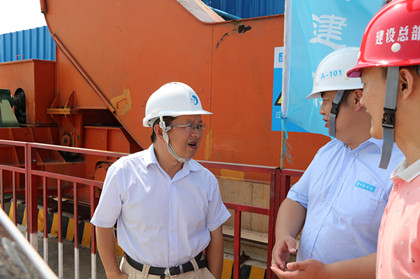 项目经理黄两宜向前海管理局副局长唐绍杰汇报工作  唐绍杰一行到施工现场检查工作 10月6日,前海管理局副局长唐绍杰一行赴隧道公司深圳地铁9111标检查指导工作,项目经理黄两宜、项目总工罗伟庭、盾构工区经理罗德静等陪同。 首先,黄两宜就9111标段工程概况、施工重难点、施工节点等作了详细汇报。听取汇报后,唐绍杰一行走进施工现场,看到现场热火朝天的施工场景,整齐码放的材料、标准化的CI、干净整洁的工地等,唐绍杰给予了高度赞誉,并对项目全体员工在国庆佳节加班加点施工、艰苦奋斗的精神状态给予赞扬。 最后,唐绍杰强调要严格按照深圳市地铁集团部署及下达的年度任务执行,确保工程安全质量,加快项目施工进度,推动9号线早日投入使用。 黄两宜表示,项目团队一定会众志成城,攻坚克难,精诚履约,为业主及深圳市民交上一份满意的答卷。(文/隧道公司深圳地铁9111项目:喻洋)