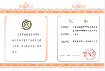近日,在辽宁沈阳举办的中国爆破行业协会第六次会员代表大会、第233场中国工程科技论坛、第八届中国爆破行业协会科学技术奖颁奖会议上,隧道公司怀邵衡铁路项目经理张永红、项目总工李龙、二工区总工杨再玉等人代表中建五局申报的《浅埋铁路隧道下穿民房软弱围岩段爆破减震技术及应用研究》项目获得单位及个人二等奖。