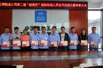 经过为期三天的紧张角逐,渝黔项目中心试验室副主任霍红飞一举夺得本次大赛的冠军;渝黔项目一工区试验员游峰、长沙地铁4号线六项目试验室主任范永红分获二等奖;刘顺志、兰俊、黄才健分获三等奖;肖奇生、游洋、魏英子、谢文杰分获优秀奖。