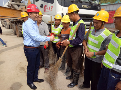 彭旭峰称赞,“中建五局人不愧是铁军,行动迅速,不到七个月就完成了开工到百米封顶,提前10多天攻克南端百米封顶节点”,并提醒项目部在抢进度的同时,也要继续保证实体质量。彭旭峰充分肯定长沙地铁5号线文明施工,现场干净利落,材料堆码整齐大方,CI覆盖标准大气,尤其是栅栏式防护栏杆成了一道亮丽的风景线。