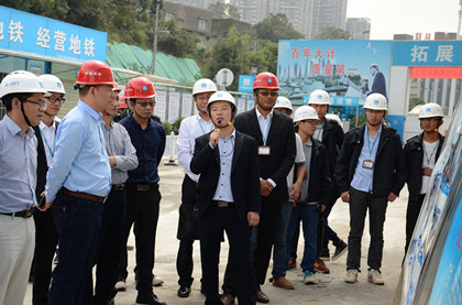 10月21日,长沙市轨道交通集团董事长彭旭峰、常务副总经理旷庆华、长沙市轨道交通5号线建设有限公司总经理蒲富华一行赴隧道公司长沙地铁5号线项目检查指导工作,为项目蟠龙路站南端百米提前11天封顶祝贺点赞,隧道公司总工程师郑邦友、长沙地铁5号线二标工程指挥部班子、项目班子成员陪同。