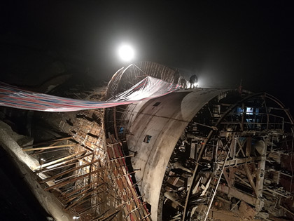 在洞门节点工期的鞭策下,即使雨天对洞门作业有影响,仍采取了挂彩条布的遮雨措施奋力进行作业。历时8天时间,于10月20日下午三点,茶子山隧道进口帽檐斜切式洞门顺利开盘浇筑,如期完成洞门节点工期。这标志着茶子山隧道主体工程全面完成,为实现架梁机通过茶子山隧道进一步奠定了基础。