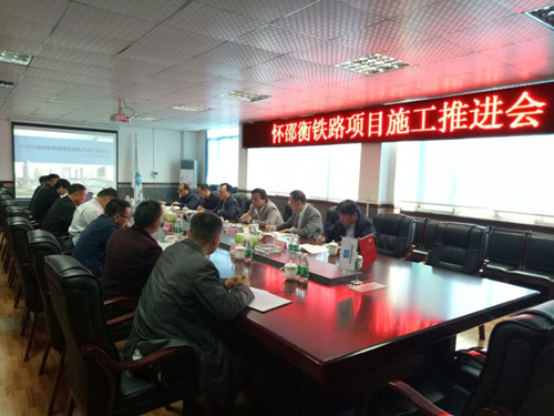 李桐生一行查看了怀邵衡项目架梁通道等施工情况后,在项目部会议室召开了怀邵衡铁路施工推进会,项目总工李龙对项目运营情况、架梁通道现状及铺轨节点进行了汇报。