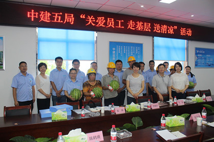 “大家辛苦了!高温天气作业大家一定要多喝水,注意饮食,在施工现场要备好防暑药品,注意防暑降温,希望大家都可以健康生活、健康工作。”检查组成员局党委工作部副部长李晓红对工友们说道。随后,李晓红将凉茶、西瓜等清凉物资递到工友手中。