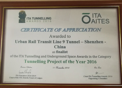 近日,国际隧道协会(ITA)2016年度工程大奖揭晓,中建隧道参建的深圳地铁9号线工程提名“年度隧道工程”奖。