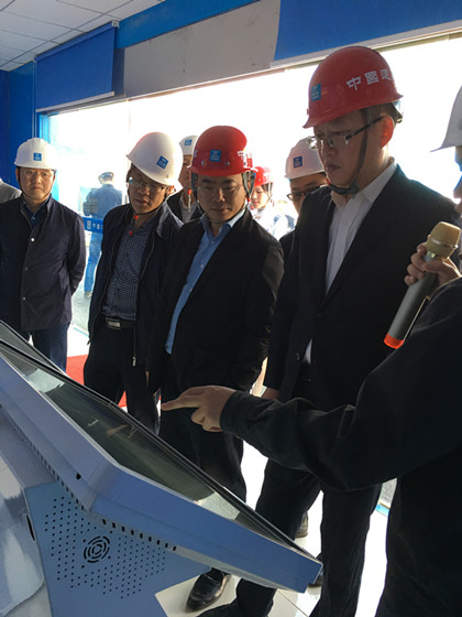 进入水渡河站施工现场,解说员首先对长沙地铁5号线整体的工程概况、工程重难点等进行了简要的介绍,随后一行领导先后参观了“智慧工地”管控中心、管片堆放区,对盾构区间工程概况、施工进度、质量控制、标准化施工管理、盾构施工工序、信息管理等进行全面了解。