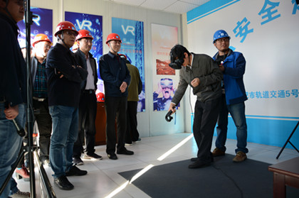 在杭州路站施工现场,指挥部总工欧广州就项目工程概况、施工进度、关键节点风险管控等情况进行了详细汇报。随后高康一行先后体验了VR体验馆的高空坠落、挖机伤害等施工事故模拟,参观了安全可视化教育室、钢筋加工棚、基坑开挖施工等,观摩后,高康一行对杭州路站安全管理双重预防工作给予高度评价,并强调:城市轨道交通参建单位要达到安全风险自辨自控、隐患自查自治,提升安全生产的整体预控能力,坚决杜绝事故发生。