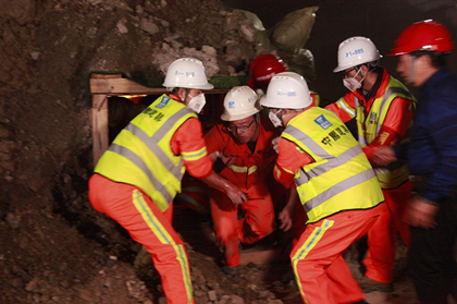 下午3点,隧道洞长陈跃在隧道内检查时,发现隧道拱顶开裂、掉块,他立即启动应急预警装置,组织工人迅速撤离。但在撤退过程中,隧道拱部发生坍塌,造成隧道坍塌关门事故。陈跃第一时间向项目负责人汇报,项目部接到事故报告后立即启动事故应急救援预案迅速组织力量自救,并逐级上报事故情况,联系消防、医院实施救援。最终在总指挥康志鹏的指挥下,现场技术组、救援组、后勤保障组等密切配合,争分夺秒,成功解救5名被困人员。