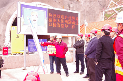 邓尤东一行先后视察了“中建第一长隧”——太阳湾隧道进口、斜井、横洞、出口施工情况,并深入到各个隧道口掌子面视察一线施工情况。随后,邓尤东登上正在做业的阿特拉斯三臂凿岩台车操作室,并向操作手详细了解设备性能、运行情况及超欠挖的控制要点。