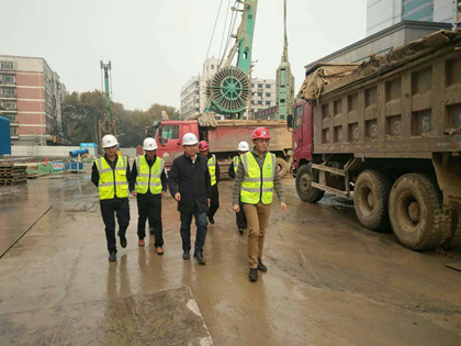 刘家军一行首先查看了太康路车站施工现场,对进度及安全文明施工情况进行了解,对现场安全文明施工进行了指导。随后刘家军听取了李金求对项目工程情况的汇报,对项目重难点进行说明,刘家军提出项目要加大资源投入,在安全质量保证的条件下,加快施工进度,落实好扬尘治理的7个100%,将太康路车站做好做精,打造成郑州地铁建设领头羊。