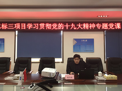 何冬初以“新思想·新时代·新征程”为主题,结合自身学习党的十九大精神的认识和体会,从十九大的重大意义、十九大报告总体框架及主要精神、落实十九大精神的基本要求三大方面为项目员工进行宣讲。