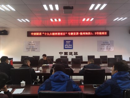 12月20日,中建隧道党委书记何冬初到徐州地铁3号线开展学习“十九大精神进项目”专题党课宣讲会,徐州地铁1号线、3号线,项目党员及班子参加。