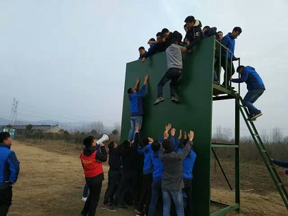 12月3日,徐州铁人团队身着蓝色冲锋衣,一个个笑容满面,迈着矫健的步伐,登上了去往拓展训练基地的大巴车。在出发前夕,大家心中有着一个疑惑,是要去哪里?总是能够听到身旁有人在窃窃私语询问他人,然而却无人能答,这无疑为它增加了些许神秘色彩!经过了大约40分钟的车程,便来到了目的地。下车之后在教练的部署下,大家以小组为单位,很快便展开了拓展项目: