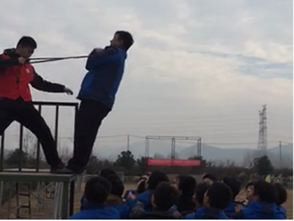 每个人都要翻越一堵大约4.2米且垂直的围墙,这又是一个必须依靠集体的力量才能完成的项目。刚开始,大家都认为这是很难完成而且比较危险的任务,估计需要半个小时才能全部通过。