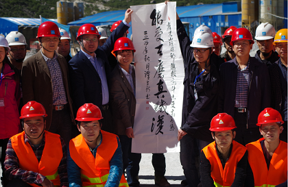 谭立新听取了项目汇报并实地考察后,向项目建设者题字“能受天磨真铁汉”。他说,“雀儿山项目条件艰苦,我深有感触,我因高原反应产生的头痛和大家的坚守相比不值一提,我的头痛缺氧只是一时困难,而你们的长期坚持才是真正的守得住清贫耐得住寂寞,你们配得上这句话。”座谈会上,谭立新一行与项目员工亲切交谈,了解项目同事所需所想,为项目新同事加油打气,同时向项目坚守的老同志们送上了亲切的问候和祝福。