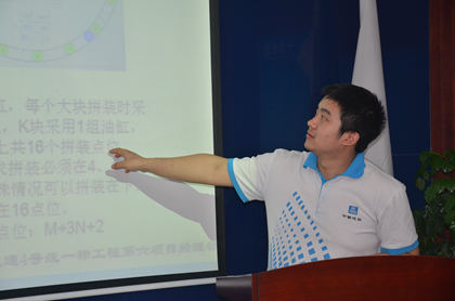 张永康通过现场实拍图片、视频及PPT展示,为听讲的小伙伴们讲解“盾构机组成及井下值班工程师职责”。课程前半部分主要讲述盾构机的基本构造和盾构机的工作原理,后半部分主要讲述井下值班工程师掘进前、掘进中、掘进后的准备、控制和监督总结以及相关表格的填写与规范要求。课程结束后,分公司总工刘湛对盾构结构和原理结合自身多年盾构施工经验进行了近一小时的指导与交流。