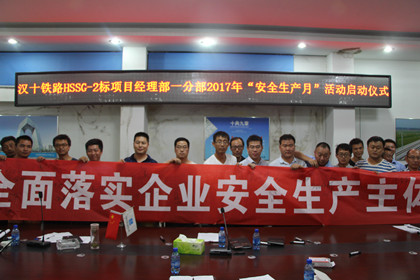 近日,中建隧道汉十铁路项目2017年“安全生产月”启动仪式在项目部会议室举行,项目班子、全体管理人员及劳务队负责人共计60人参加了此次启动仪式。此次仪式拉开了“全面落实企业安全生产主体责任”为主题的“安全生产月”系列活动序幕。