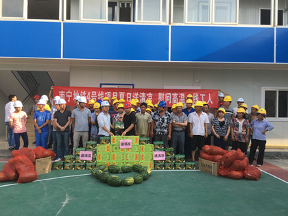 炎炎夏日,烈日高温,南宁地区平均温度超过了35摄氏度。6月14日,中建隧道南宁地铁4号线项目开展了“关爱劳务工人送清凉”活动,工会分会主席曹亚奇带领项目员工把清凉的西瓜、王老吉、绿豆等防暑降温物资送给车站主体施工队伍、钢支撑队伍、土方队伍、防水队伍、临建等高温作业人员,为他们送去夏日的清凉和关爱。