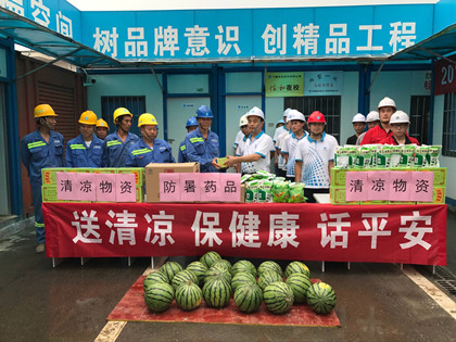 进入六月,也就意味着高温酷暑即将炙烤着在这一线辛苦工作的铁人们。为了确保工友们以及项目员工身体健康,项目高度重视夏季全员防暑降温工作,并把防暑降温作为安全生产月工作中一项重要的工作抓好。