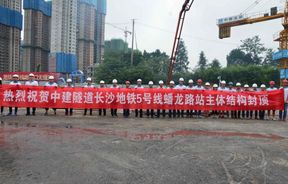 2017年6月29日,中建隧道长沙地铁五号线蟠龙路站最后一仓顶板浇筑完成,标志着蟠龙路站主体结构顺利封顶。