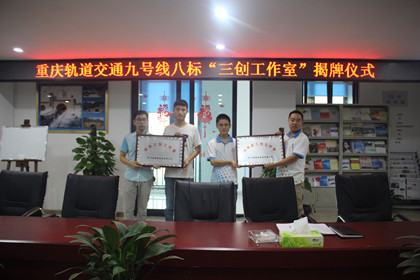 7月10日,“洪兆庆三创工作室”和“徐欢三创工作室”授牌仪式在重庆九号线八标项目部举行,项目生产经理何良波、协调经理龚川东为工作室负责人授牌。
