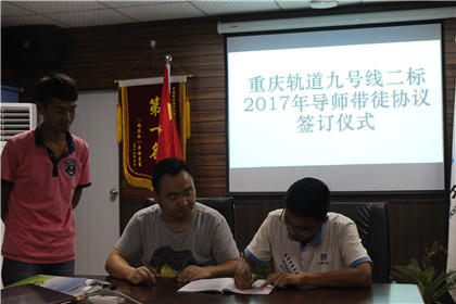 8月3日,重庆轨道交通九号线二标项目经理部开展“导师带徒”签订仪式,项目经理黄成等项目班子成员及全体管理人员参加。