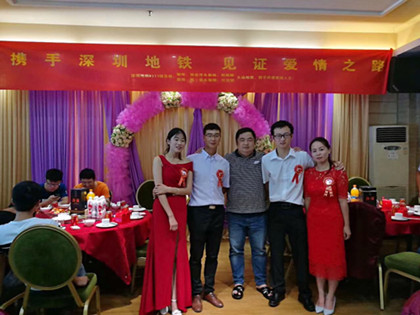 项目员工共同见证了这两对新人一路的欢乐、付出、收获。作为深圳地铁9111项目首次举办的员工集体婚礼,项目部秉承“拓展幸福空间”的使命,在今后的生活中,项目将更多地从员工的个人幸福点出发,促成更多有情人成眷属。