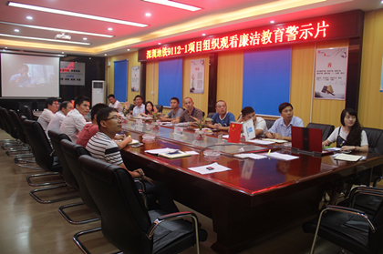 强化廉政思想,观看廉洁教育片。通过观看廉洁微电影《兄弟》,告诫项目关键岗位人员廉洁自律,以身作则,各尽职守,励精图治。并让大家懂得在自身岗位工作中,如何用实际行动贯彻廉洁从业领域的“学”和“做”,提高员工自我防范意识。