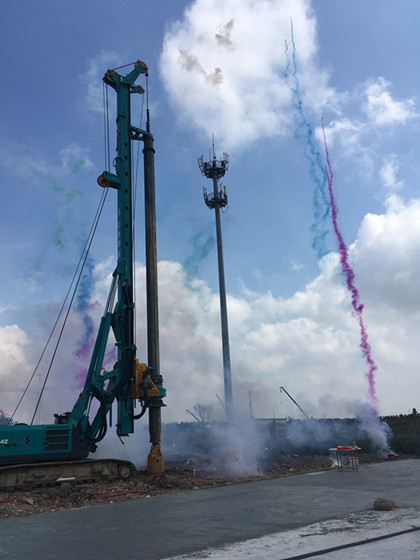8月27日,着阵阵礼炮声,中建隧道青岛地铁8号线项目“红岛号”战机尾翼——南广场于上午10点正式开始试桩。项目经理米永兵为代表的全体管理人员及桩基队伍全体工人参加试桩仪式。
