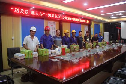 为了切实保障建筑工友们的生命安全和身心健康,更好地让现场正常施工作业,防止炎热高温中暑,营造良好的安全生产环境,9月8日,深圳市总工会到中建隧道深圳地铁9号线西延线9112标段各工区开展送清凉慰问活动。慰问人员将凉茶、绿豆、毛巾、药箱、冰片糖等清凉物资送给了项目部全体人员、监理单位、各工区施工队伍,表达了深圳市总工会对重点工程项目的关心,让参建人员感受到工会组织的深深关怀,丝丝清凉。