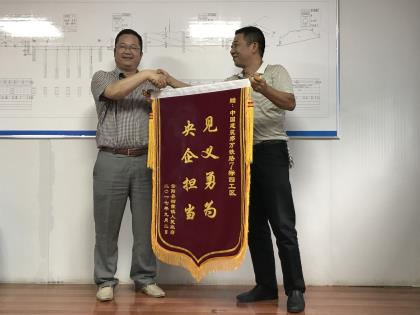 近日,重庆市云阳县栖霞镇人民政府为中建隧道郑万铁路四工区送来感谢信和锦旗,就郑万铁路四工区员工帮助村民扑灭山林大火的见义勇为行为,表示感谢。栖霞镇政府领导亲手将写着“见义勇为,央企担当”的锦旗交予工区经理李秉海,这简短的八个字,承载着中国建筑作为一个中央企业的责任与重量。