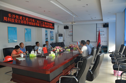 9月14日,局首席工程师李水生率科技设计部阳栋一行到中建隧道长沙地铁5号线蟠龙站现场调研指导渣土泥水分离设备研究工作,长沙地铁5号线二标指挥部副总工支华龙、技术质量部习智琴、项目总工程师钟文京等陪同。